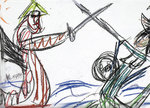 color drawings in crayon on paper, I made in 2010; representational modern drawing art