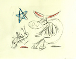 black-white-litho; graphic art, with some colored crayon in it., unica-print