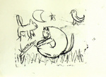 black-white-litho; graphic art, unica-print cat, bird, rabbit, dog